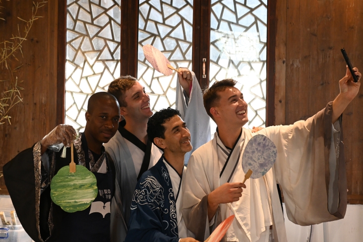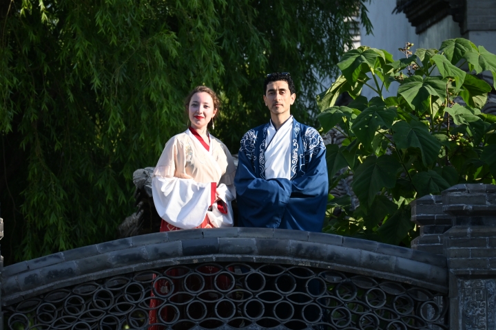 为了让留学生们更加沉浸于这场文化盛宴,青岛滨海学院还为他们准备了一场特别的汉服体验活动。留学生们纷纷穿上自己心仪的汉服,在唐岛湾畔的美丽山水间拍照打卡,他们的笑容与汉服相得益彰,成为了一道亮丽的风景线。